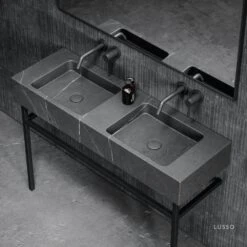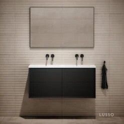 The Lusso Claridge 800mm Black Oak Freestanding Vanity Unit (with stone basin included) fuses elegant design with contemporary storage. Inspired by luxurious hotel resorts across the globe, our talented designers hand finish each piece to create a truly remarkable addition to your interiors. The Claridge is beautifully crafted using mountainside real oak veneer and is finished in black with a 10% sheen. Perfect for any space with an urban, industrial aesthetic, this striking vanity redefines modern luxury.