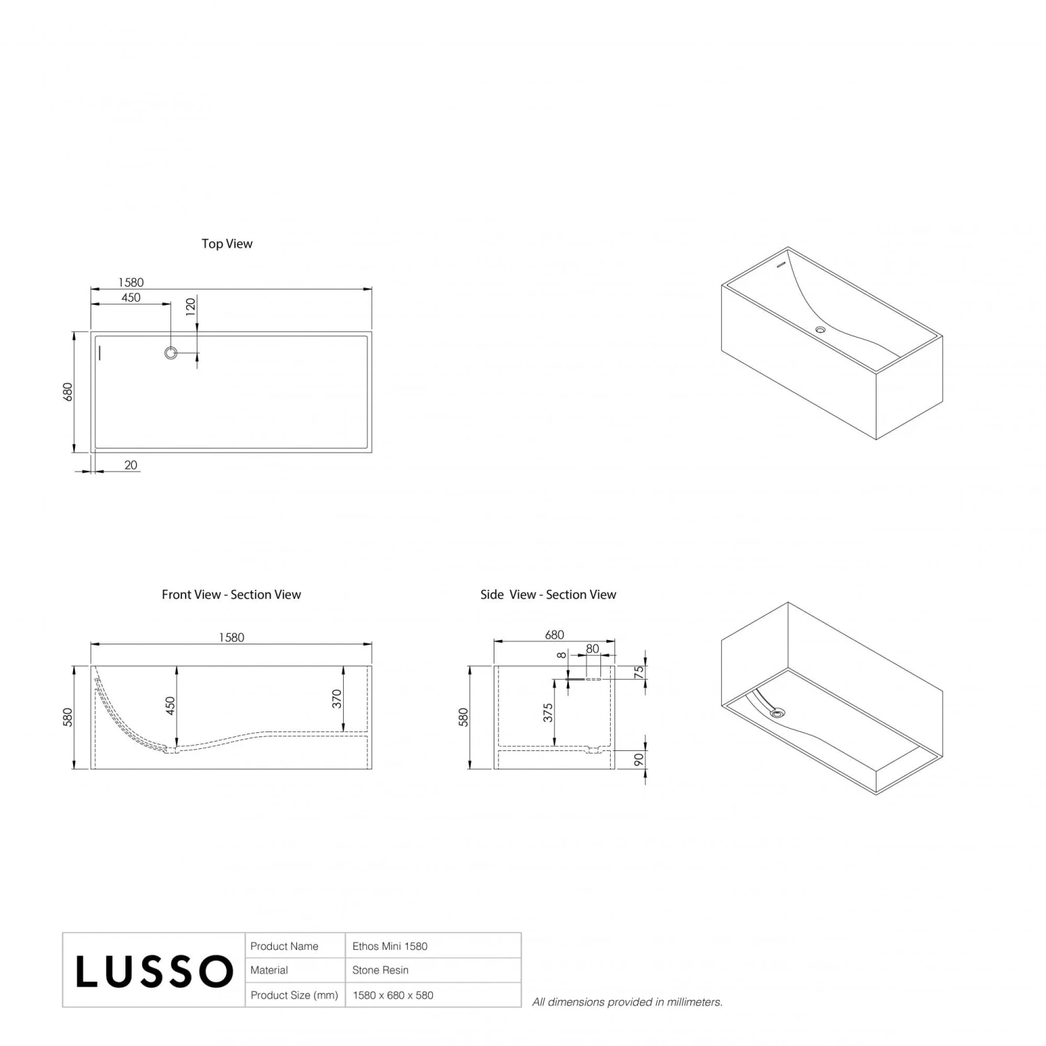 Designed in Britain, and hand-finished by our team of artisans, the Ethos Mini stone bath gives a twist of glamour to any interior. Inspired by minimalist elegance, the Ethos boats masculine elements that are ideal for elevating an industrial-inspired setting. Expect clean, captivating lines that define a svelte profile that doesn’t compromise on comfort or design. The Ethos mini is a truly unique piece that showcases signature design and expert craftsmanship, shown here with our brushed steel bathroom taps.