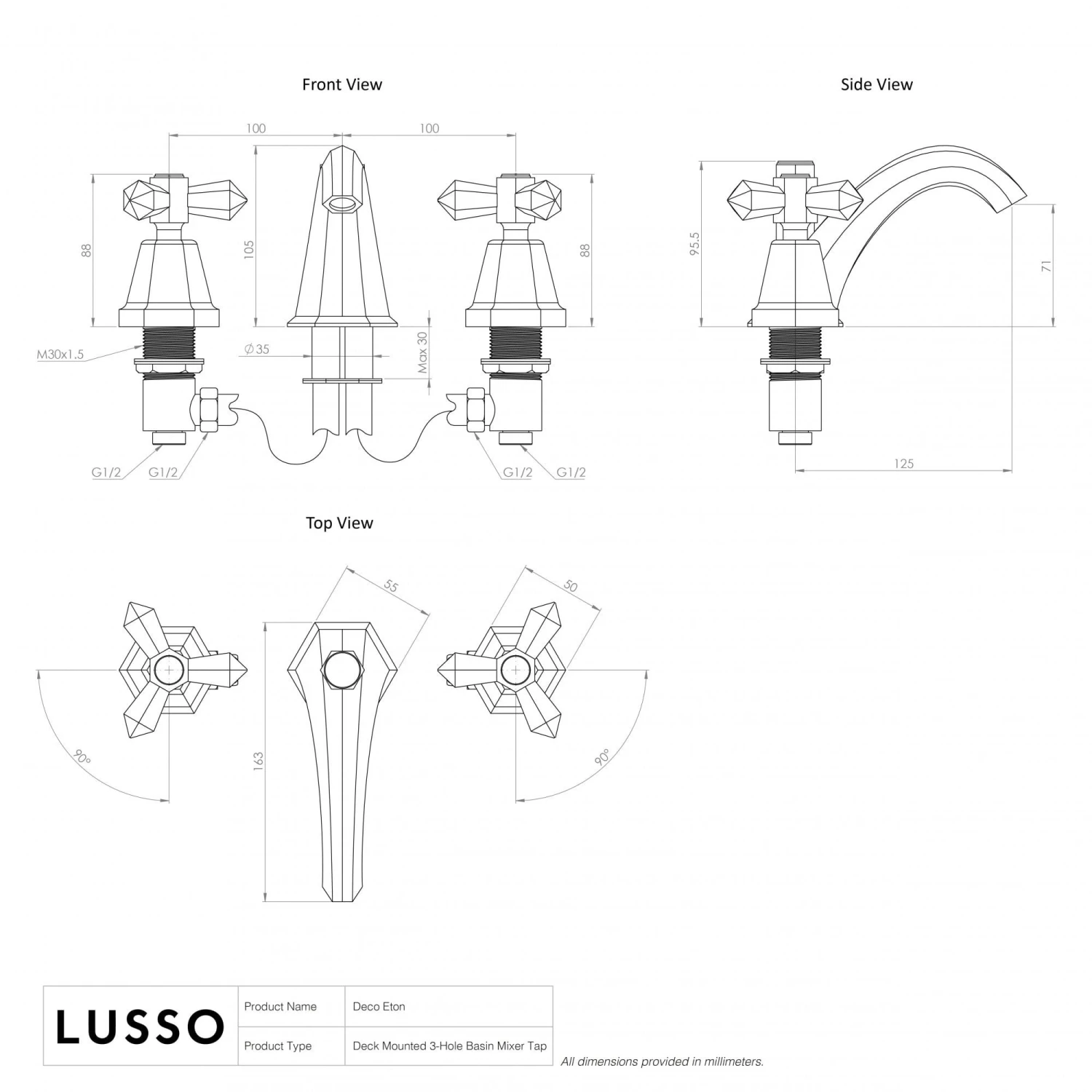 Model: Eton Deck Mounted 3-Hole Basin Mixer Tap