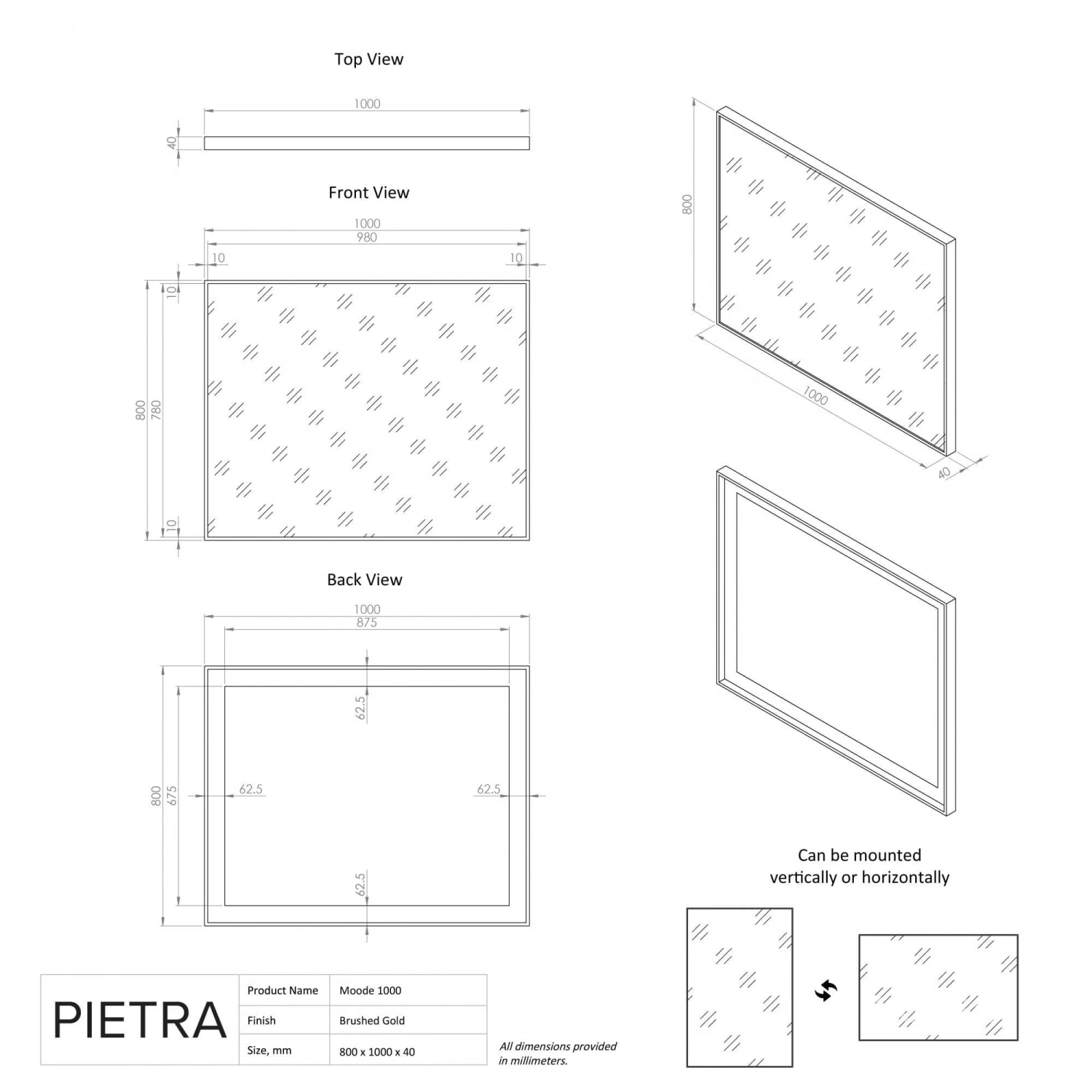 Size – Width 1000mm x Depth 40mm x Height 800mm