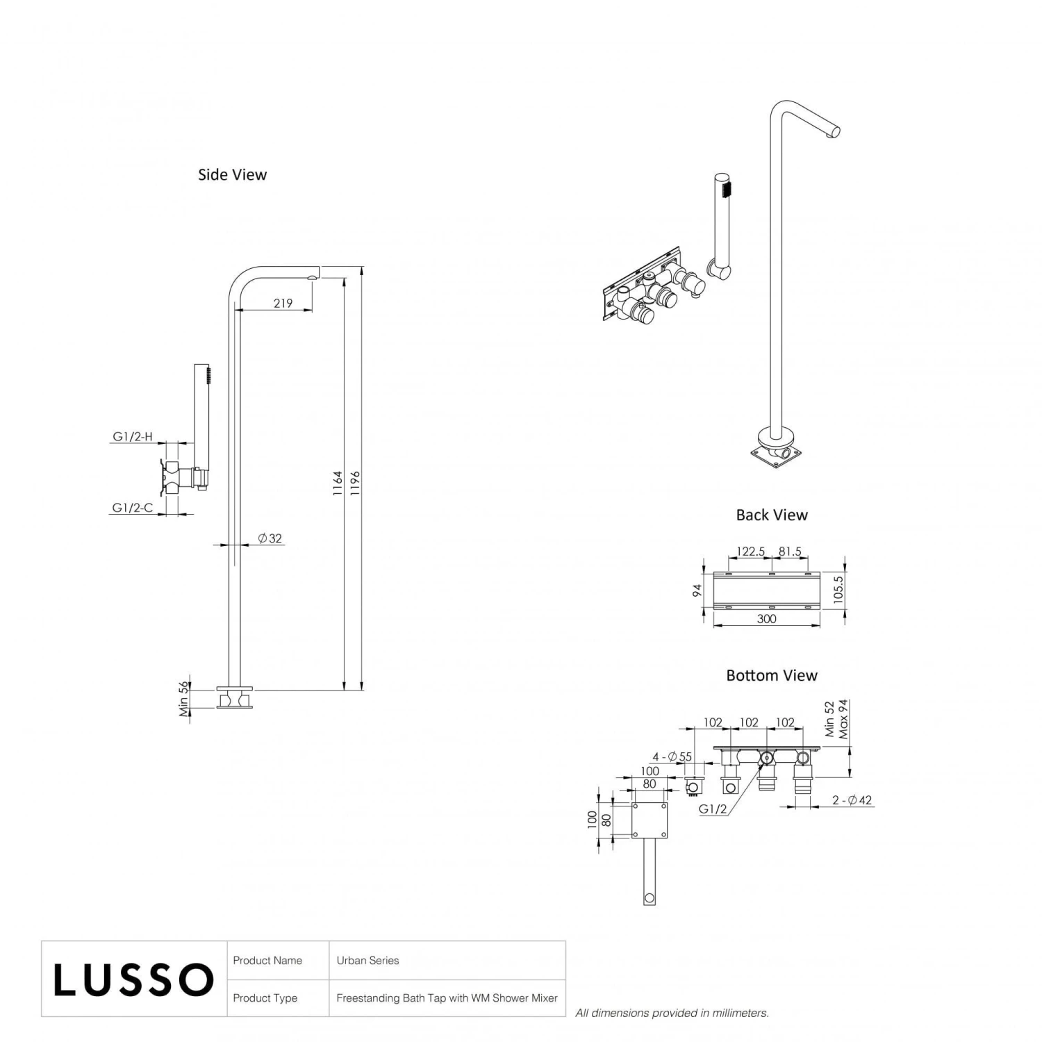 Designed to elegantly stand alongside a freestanding bathtub, the Urban Floorstanding Bath Shower Mixer Tap offers practicality, convenience, and a stunning aesthetic.