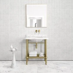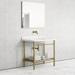 Belmont Traditional Brushed Gold Vanity Unit With Carrara Marble Countertop 800mm