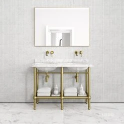 Belmont Traditional Brushed Gold Vanity Unit With Carrara Marble Countertop 1000mm