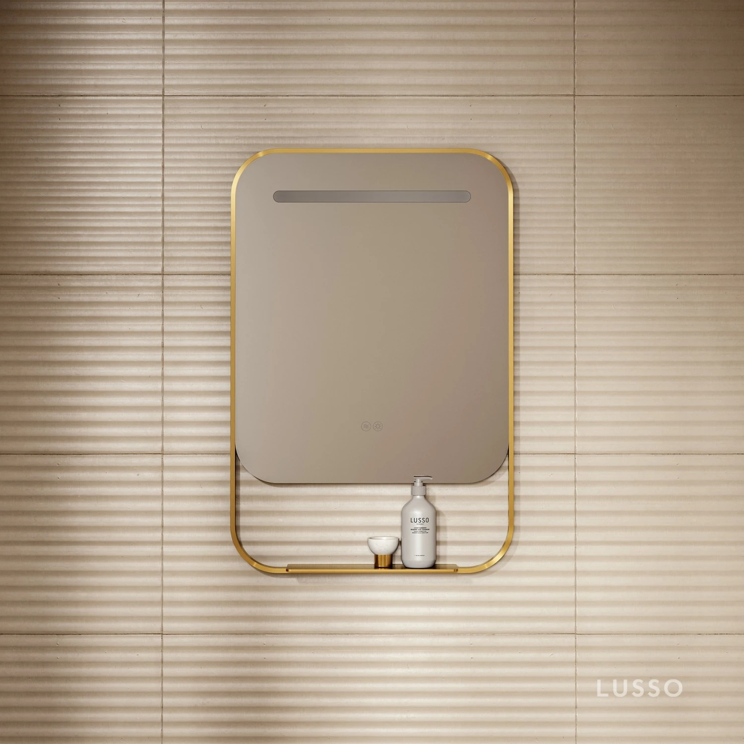 Enhance your home with the Vario LED mirror, in our regal brushed gold finish, this modern piece perfectly fits any contemporary interior.